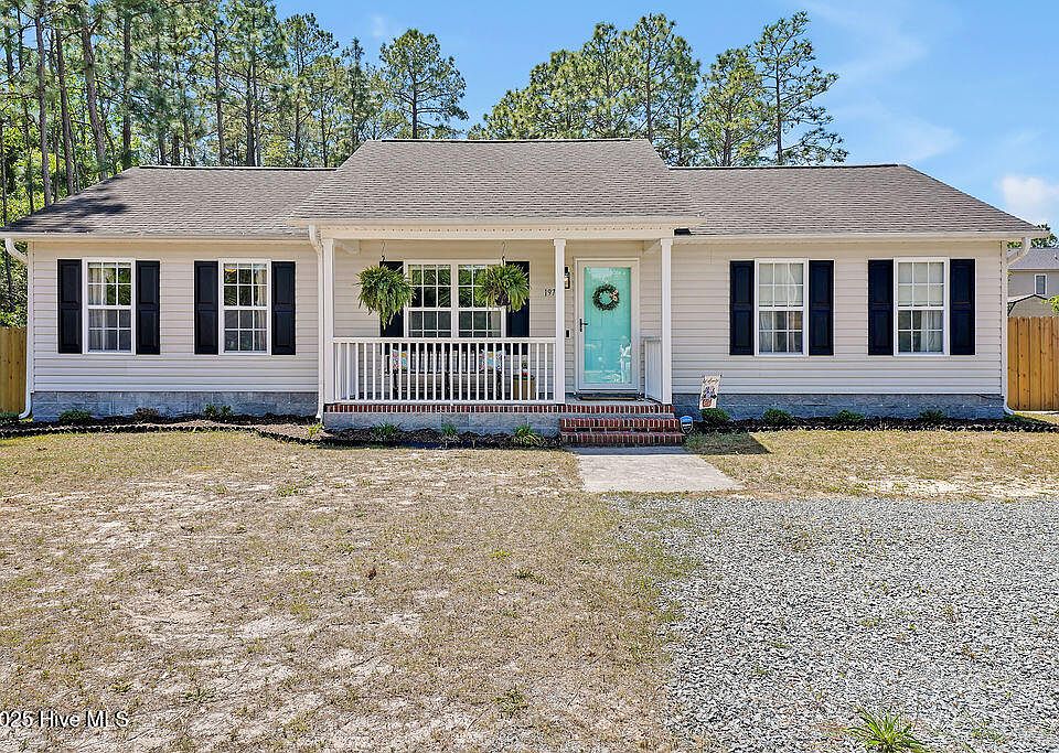 The primary suite is large and the split floor plan places two additional bedrooms on the opposite side of the home—one currently set up as a cozy den with a loveseat and TV, perfect as an office or flex space. The third bedroom, currently a nursery, could also serve as a guest room or creative studio. The fully fenced-in backyard has tons of potential for fire pits, a corn hole setup, or even a pool ! Edison string lights create evening ambiance under the whispering pines—ideal for relaxing & enjoying the sound of birds in your private backyard. The community features amenities such as a public golf course, picnic areas, a fitness center, and public swimming at Spring Lake is only 3 mins away- with no HOA fees! Call us today for a showing of this sweet Cherry Road gem !