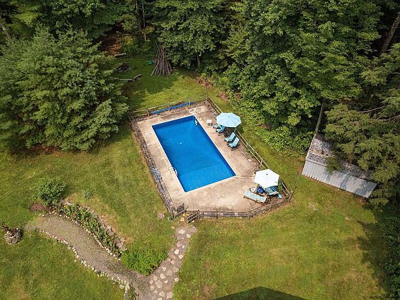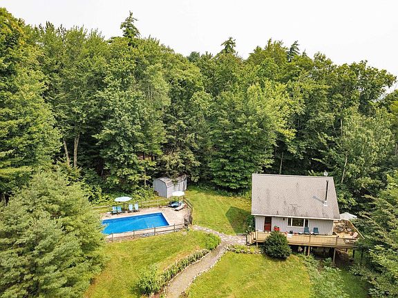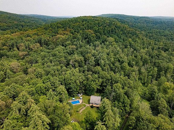 First time on the market! Located in desirable Accord and perched on a hill at the end of a long driveway sits this unique and charming saltbox style home. Surrounded by dense forest and offering total seclusion and privacy, the property is ideal for those seeking an upstate escape with treehouse vibes that is also an active short term rental. A former town road (now defunct) that abuts the property has been reclaimed by nature and offers extensive walking paths that weave their way through majestic woods. Additional outdoor spaces include a sizable lawn, a wrap around deck and an in ground pool with a large adjacent fire pit. The main floor of the interior includes an open floor plan with vaulted ceilings, large windows that provide an abidance of natural light throughout the day, a wood stove that creates a cozy setting from which to watch the snow fall, a small bedroom and a full bathroom. Upstairs is a second bedroom as well as a large loft that overlooks the main area offering plenty of optionality, whether for additional communal space or a third 'bedroom' to accommodate overnight guests. The pine cladding on exterior of the house was sourced and milled directly on property and various wood elements in the bathroom are repurposed pieces of the Coney Island boardwalk reclaimed after Hurricane Sandy. Westwind Orchard, Arrowood Brewery, Saunderskill Farm, Stonehill, Accord Market and Inness are all just a few minutes away.
