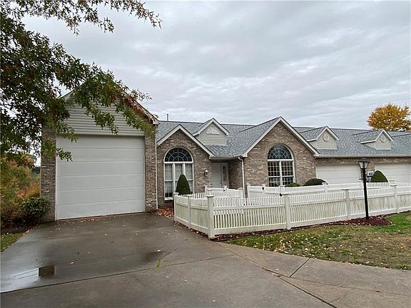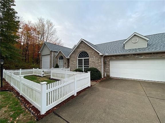 ENJOY ONE FLOOR MAINTENANCE-FREE LIVING AT ITS FINEST! Located at the end of a cul-de-sac in the desirable Country Club Commons, this patio home features an open floor plan, four bedrooms, three full baths, large rooms, a large master suite, an eat-in kitchen with plenty of cabinet and counter space, a vaulted family room with gas fireplace, a first floor laundry, a large and partially covered rear deck, and a beautifully finished lower level with a game room, wet bar, and a separate room that could be used as a private workshop, office or wine room. Big closets, plenty of storage space, and new carpets. The second attached 14x39 garage is large enough to hold an RV, boat, or several vehicles. Private location on a large wooded lot with great views! Close to Hill Crest Country Club, shopping, parks, and Route 56. This extraordinary home truly is a GREAT FIND and a MUST-SEE!