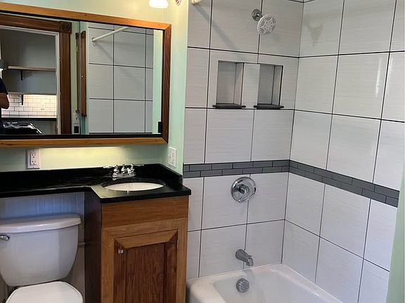 2 bedroom Deering Highlands apartment. Centrally located in one of Portlands most desirable neighborhoods. 1st floor unit of 3 unit Victorian. Spacious with lots of period details and charm. One designated off street parking spot with easy on street parking (does not alternate sides as other streets). Kitchen, soapstone counters, Kraftmaid cabinets, slate floor, dishwasher all recently remodeled. Dinning room with period built-in, hardwood floors, and open to the living room. Bathroom recently remodeled with tiled heated floor. Soapstone counters and tiled shower. Shared Landry in basement. Bedrooms have closets and hardwood floors. Available August 4th, one year lease, one month security paid when lease is signed. First and last month rent paid at move in. No dogs will be considered. Rent is $2350/mo. + heat/hotwater, electricity and media.