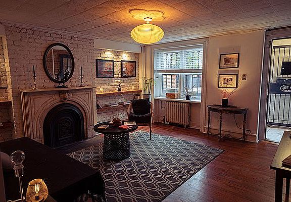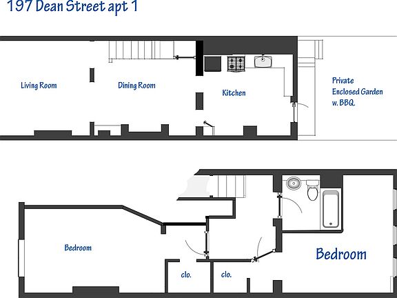 Draft rental description GARDEN DUPLEX- Located on one of Boerum Hills finest landmark blocks convenient to subways, dining, shopping, waterfront park etc. Enter on the garden floor. A detailed living room with marble mantle , tin ceiling, and exposed brick walls . There's a large eat in kitchen with access to a landscaped private garden . Kitchen features ample storage, including a small pantry , dishwasher, microwave, and stainless steel appliances . The separate dining room has beamed ceiling and decorative stone fire place. Upstairs there are 2 large bedrooms one overlooking the garden and one with a floor to ceiling treed street view . Both have decorative fireplaces and generous walk-in closets. The bathroom has been newly renovated. The rear garden is very private ,with a paved brick area suitable for out door dining. .The cellar has good storage space and washer/dryer. Heat and hot water included. Across the street is the wonderful Rucola bistro open for breakfast lunch and dinner.