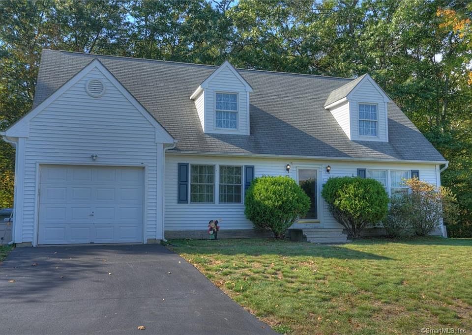 Lovely dormered Cape Cod has 2 bedrooms with potential to add additional bedrooms in desirable neighborhood of Mystic! Sizeable walk-up attic, all floored, and ready to be finished. Easily could be transformed into a 3rd and 4th bedroom or Master Suite. It even includes rough plumbing for an upstairs bathroom. Home offers an eat-in kitchen with attractive cabinetry, pantry, and stainless steel appliances with access to the garage. Includes a spacious living room and dining room with slider that opens to the backyard. Home is complete with Thermopane windows, full bath with a double-sink vanity, and a full basement. Situated on 0.64 rear lot, you will love the extra privacy it provides.