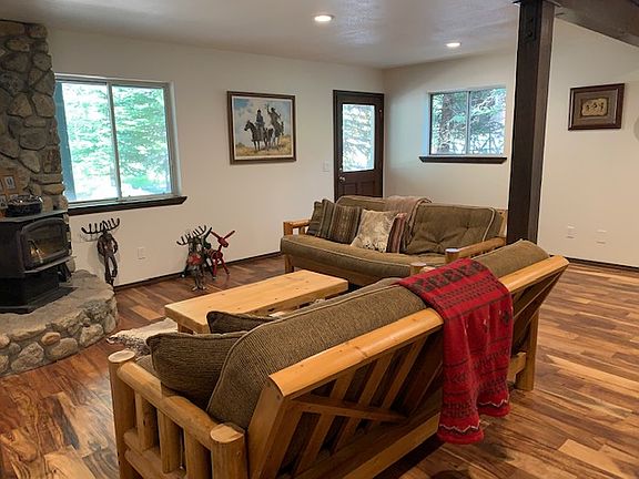Newly remodeled home and move-in ready. Custom remodel includes a new bright kitchen with updated appliances, copper plumbing, heater, bathrooms, hardwood floor, front entry banister, and a fresh coat of paint inside and out to name a few. Upper Level Features a master suite with a vaulted ceiling, bright new kitchen, bar seating, and dining area. Upstairs also includes a large living room with vaulted ceilings, wood stove, views of Carson Peak, and Reversed Creek. Entry-level features two bedrooms, full bath, large family room with wood stove, and laundry room. Both levels have access to the backyard where you can appreciate Reversed Creek and the National Forrest. Located in the Dream Mountain Subdivision. We, Will, Work with Brokers!