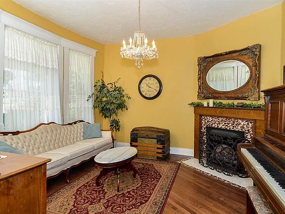 Charming historic home in the heart of town. Classic covered front porch is a show-stopper. Major historic features have been preserved such as original hardwood and fireplace tile surround. Main floor living areas have high ceilings Large updated kitchen showcases tile flooring plus built in bar and bar stools. Separate formal dining. Main Bath has new cultured marble shower surround. Electrical and plumbing have been updated and new attic insulation added for energy efficiency. New roof in 2009. Covered rear porch. Huge, well-maintained yard w/full vinyl fencing. Play set stays. Square footage figures are provided as a courtesy estimate only and was obtained from county records . Buyer is advised to obtain an independent measurement.