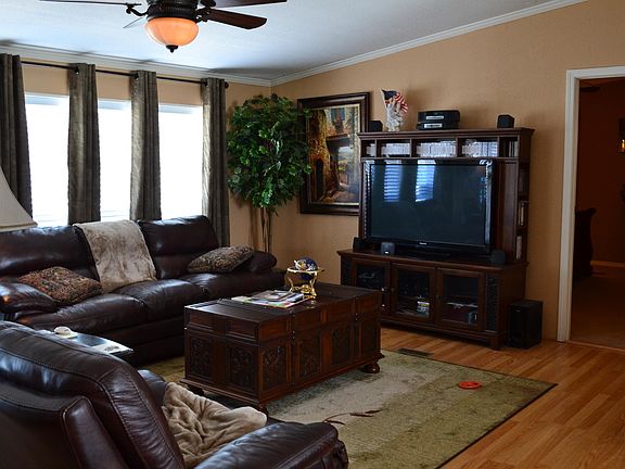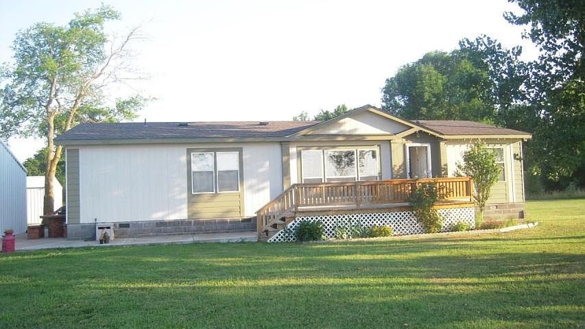 This home is a Solitaire manufactured home in immaculate condition. Financing is available with 20% down. Country living close to town. Owner has just updated paint, flooring, and granite in kitchen. With new stainless appliance, new sink/vanity and toilets in bathrooms. Fenced back yard, storm cellar and storage building out back. Two car garage with room for work area.
