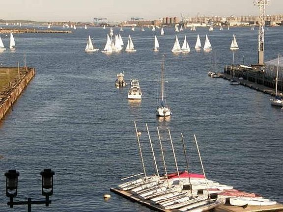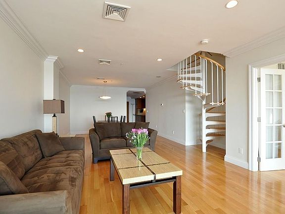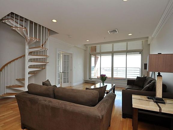 Exceptional opportunity to create your oceanfront home!This Flagship Wharf penthouse duplex is located direct, front & center facing down harbor & the city! +2000SF,2/3 bedrooms,(fireplaced library can be used as 3rd bedroom), 3 baths. 1st floor master bedroom as well as upper bedroom suite with en suite bath via space saving circular stairway. Spa bath with double sinks, large, jetted tub, jet spray shower, 2 walk-in closets & open sitting area. Private outdoor deck overlooks the city and harbor. Peninsula granite/stainless kitchen opens to formal dining area & living room. Hardwood floors, great closets & an elegant marble formal entry makes this a city oasis! Full service concierge, elevator building with fitness center & sauna. 1 self park & 1 valet garage parking included! Easy access to downtown via water shuttle, water taxi, Logan airport & major highways.Located in the historic Charlestown Navy Yard surrounded by green parks, marinas & minutes to all the city has to offer!