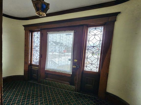 Circa 1900 Queen Anne Virtorian home. This charming home has 5 large bedrooms and three full baths, one with clawfoot tub, dining room, den and finished attic. Beautiful wood trim and details through-out, 2 winding staircases, built-ins, fireplace and mantle, hardwood floors, cast iron radiators, enclosed sunporch and topped off with a classic turret. Updated vinyl windows and updated wiring. The full basement has plenty of space for a workshop and storage. Could be converted into a 2 family home and generate rental income. Property is being sold AS-IS, sale is contingent to third party approval from mortgage holder.