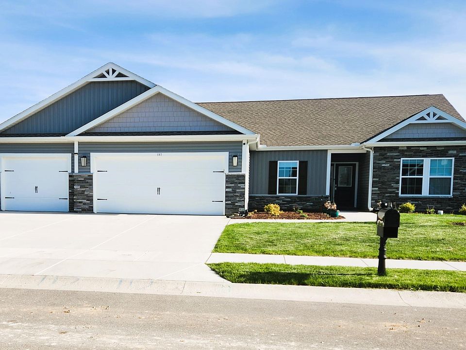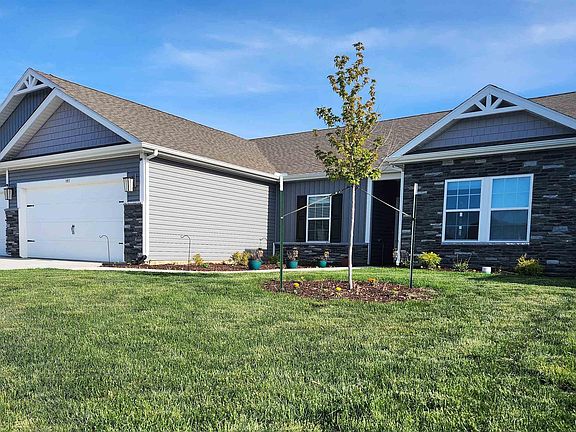 A meticulously maintained home, built in 2022, features 3 bedrooms and 2 full baths, and is situated on a pond lot in West Lafayette's Auburn Meadows. This move-in ready home features 9' ceilings, an open floor plan with natural light pouring in through a wall of large floor to ceiling windows with transoms, a full screened-in porch overlooking the community pond and fountain and an additional large open patio for outdoor entertaining, a split bedroom design, a den with inviting double glass doors, vinyl plank flooring in the living areas, window treatments, washer & dryer, water softener, and a spacious three car garage with laundry room and mud bench access upon entry. Kitchen features include custom staggered cabinetry with crown molding, a large island with seating, stainless steel appliances, granite countertops, ceramic subway tile backsplash, and a large pantry. The primary bedroom features a large ceramic tile walk-in shower, dual sink vanity, and an ample California style walk-in closet. Home is fully landscaped and is conveniently located about a mile to the local elementary, middle, and high schools. Also situated within easy access to various shops, restaurants, parks, the new wellness center, Purdue University, I65, and US 52.