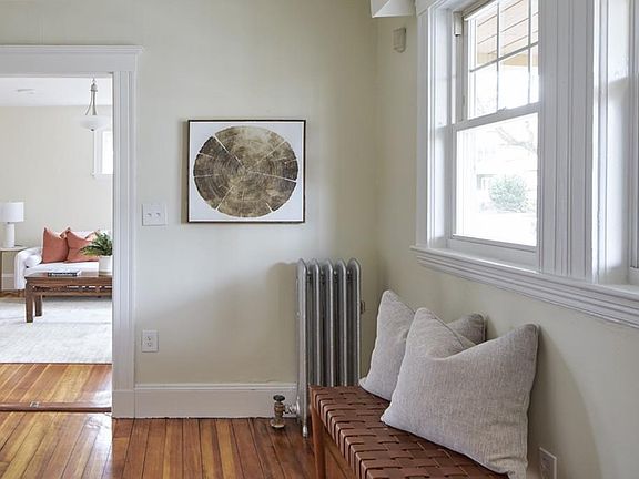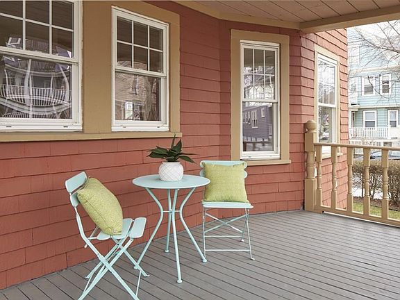 Situated on a corner lot in leafy Huron Village, this light-filled first floor unit with a private backyard and garage parking offers ease and comfort. The classic layout has a welcoming foyer, bay windows in the living and dining rooms, the convenience of a pantry/laundry room off the kitchen and two good-sized bedrooms. Timeless decorative details include a charming clear story window, trim work, picture rails and a built-in china cabinet. The freshly painted interior and newly refinished hardwood floors makes this lovely home move-in ready. In addition this unit has exclusive use access to the majority of the unfinished basement which has potential to add living area to the unit if finished or offers tremendous storage. Enjoy your morning coffee on the front porch or while surveying your private garden/yard in back. Easy access to Harvard & Porter Squares and a quick jaunt to Hi-Rise Bakery, Formaggio Kitchen and Danehy Park.