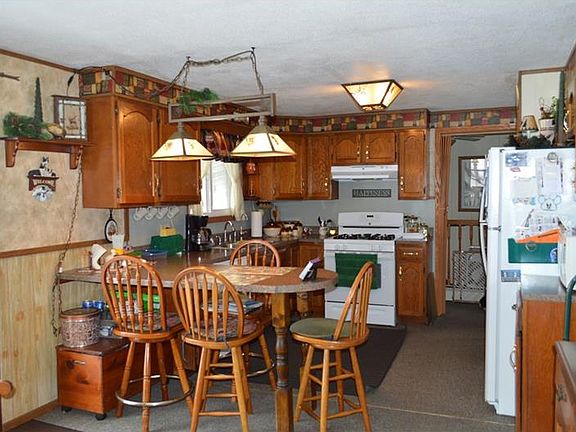 Just what you've been asking for! Raised rancher on the outskirts of town, with a little bit of acreage! This 3bd 2ba with a wrap around deck on the back. Living room is spacious with a cozy propane stove. Bedrooms are all on one level, with a full master bath. Have game night and dinners downstairs in the family room with a kitchenette, bar, wood burning fireplace. With a walkout basement your close to the two car detached garage with paved driveway. Garage shed on the side yard to store your toys.