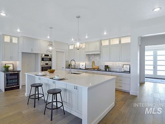 Nestled in the final phase of the esteemed Cumberland Estates, "THE KYLE" by Brookstone Custom Homes with a spacious 43' RV Bay. This award-winning design encompasses an owner's suite, two add'l bedrooms, and separate den. The grand double-door entry welcomes you with a lofty 15' ceiling, exuding elegance and warmth. The open floor plan boasts 9' ceilings throughout, while the great room stands out with its impressive 10' trey ceilings w/wood beams and a centered gas fireplace surrounded by built-ins. The kitchen is a focal point, featuring a remarkable 10' wide island, custom cabinetry, Bosch built-in appliances, walk-in pantry, and more. Enjoy outdoor gatherings on the generous 41' covered back patio, make use of the community clubhouse and pool, and relish the convenience of being situated near schools, medical facilities, grocery stores, as well as being just minutes away from downtown Caldwell and the freeway. 3D-Virtual Tour is similar in design.