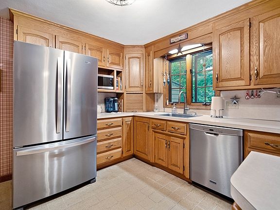 Come check out this Beautiful 3/4 bedroom home offering a spacious eat in kitchen with an abundance of cabinets, stainless appliances and access to a 3 season enclosed porch which leads to a deck and Beautiful fenced in backyard. Open to the kitchen you will find a very spacious family room with hardwood floors, built in shelving and a handsome wood burning fireplace. The first level also offers 2 generous size bedrooms and a spacious full bath. As you make your way to the 2nd level you will find a very large bedroom with a sink, bath area and a very large room that could be turned into a bedroom or office. The spacious lower level host a fireplace/wood stove, high ceilings and so much opportunity for additional living space. Other features include a 2 car garage with a third bay for an additional vehicle. The potential is endless!!!!