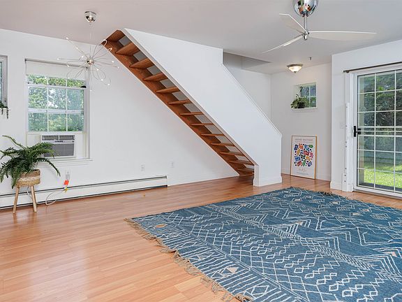 Immaculate & light filled 2 Story End-Unit Townhome in prime location within Burlington's super convenient Riverwatch Condominium Community. This 2 bedroom, 1 bathroom home provides a wide open floorplan on the main level with highly functional kitchen opening up to an integrated dining and living area. Windows throughout this corner end-unit allow natural light to flow into the dining and living areas and you'll love the sliding glass door leading out to a tranquil patio and green space. Upstairs you'll find 2 large bedrooms with ample closet space including custom storage racks. A full bathroom is situated on the open landing between the bedrooms. Other desirable features include in-unit laundry hook-ups with newly installed vent, pantry space, updated electrical, updated light fixtures and ceiling fans, 3 window AC units and a custom security gate and window covering for additional security and peace of mind. This is a secure building with sprinkler system, elevator access and assigned covered underground parking. Incredible location just a short distance to UVM, UVM Medical Center, Downtown Burlington, public transportation, parks, recreation, shopping, dining and so much more. Pets allowed too. Take a look today!