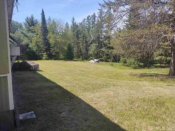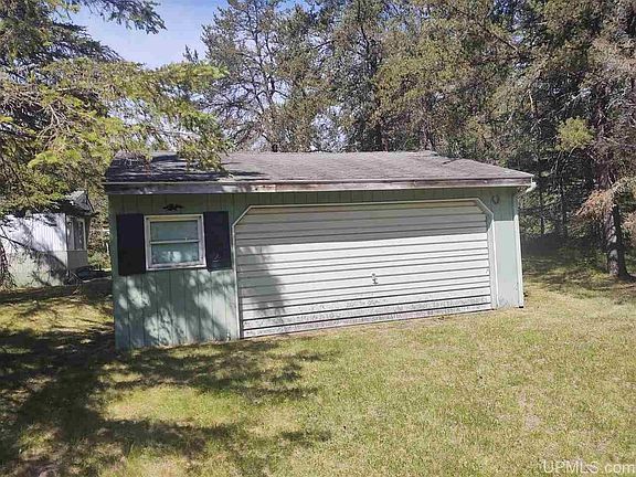 Affordable up north getaway! This older model mobile home sits on just under 8 acres complete with 2 car garage to store all your outside toys. This could be your hunting, fishing or snowmobiling base camp. Private setting but close to town with township water. Maybe it is the perfect place to build your dream home. Live there while you build. All appliances, major furnishings and the lawn mower stay. Don't wait schedule your showing!