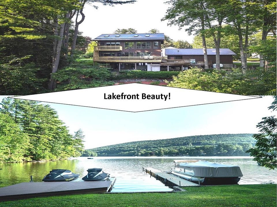 Lake Life Is The Best Life! This beautiful Post & Beam Contemporary offers sweeping lake views that can be enjoyed 365 Days of the year. With 3 floors of living space and multi level decks overlooking the water, this is one you won't want to miss. First floor living space offers living room with pegged oak floors, dining room, kitchen, full bath and laundry area. Second floor features large bedroom with attached deck and skylights, 2 additional bedrooms and a full bath with large soaking tub, PLUS a stand up shower unit. Lower level walk out basement is perfect for entertaining or overnight guests. Large family room area complete with a bar, another full bath and an additional room that could be used as an additional bedroom or office space. I can not say enough about the outside spaces. 2 levels of decking as well as a paver patio, all overlooking the lake and a meandering trail, bordered by lush landscaping and stone walls, leading to the LAKE. 3 car garage plus a storage shed round out this great property. If Lake Living is on your Bucket list, call us today to make your dreams into reality!