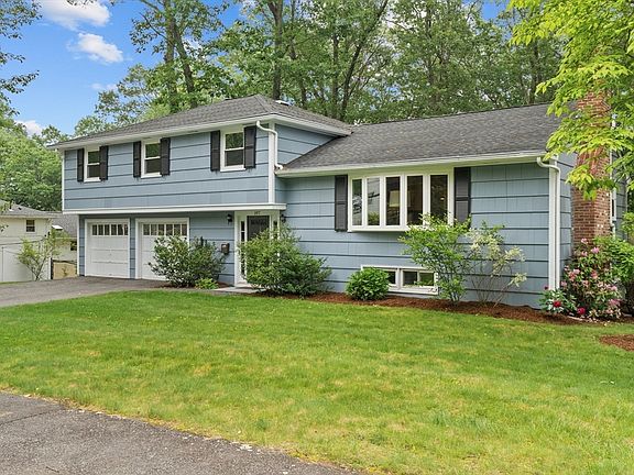 Move right into this beautifully renovated 4 bedroom, 2.5 bth contemporary Multi Level w/2 car garage in wonderful location! Main level has wide open floor plan w/Lg living rm w/bow window, recessed lighting, gas fireplace & hardwood floors opening to gorgeous kitchen w/leathered marble countertops, upgraded cabinets, stainless steel appliances, tile backsplash, pendant lighting & Lg island w/breakfast bar & wine fridge opening to dining rm w/slider to two tier deck overlooking private backyard! Upper level has 4 large bedrooms, all with hardwood floors, overhead lighting & double closets! Lg Primary suite w/updated full bath! Convenient mudroom/laundry room to recently painted 2 car garage! Lower level has beautiful family rm w/recessed lighting & gas fireplace! This lovely home was renovated in 2017! Gas heat & Central air! Gorgeous professional landscaping! Wonderful side street neighborhood w/short walk to Dunkin’ Donuts & minutes to all major routes, schools, shops & restaurants!