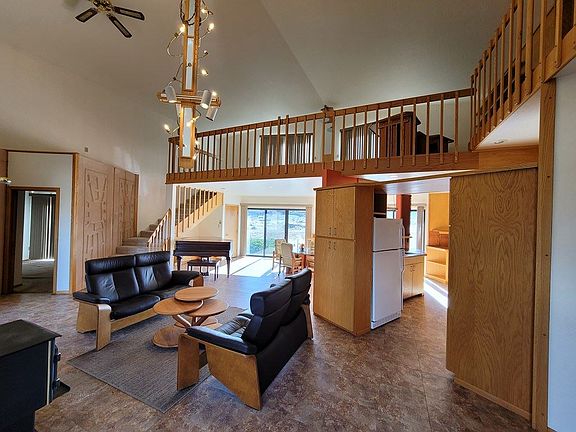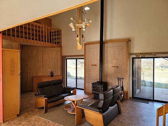 What an Original! The authentic architecture of this house lets you experience nature through all of the expansive doors, windows, patios & deck. Carter & Sheep Mountain feel like they are art in your living room & the almost 3 acres is plenty of space for animals or toys.Enjoy the beautiful 5 minute walk to public lands & access to the reservoir. Some TLC & this property can be a show stopper.