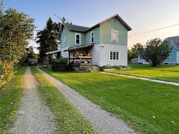 This property has tons of potential! Whether you need a very large single-family home with plenty of bedrooms and baths or you’re looking to convert this into a two family or even a three family home there’s plenty of options. At one time it was a three family home. There is a separate entrance that leads to the upstairs and the house was split down the middle. The plumbing is still intact for kitchens and bathrooms or you could change the layout and give yourself a Owners Suite and add a third bathroom. The downstairs has a large kitchen and a walk-in pantry, formal dining room, living room, a bedroom and 2nd bedroom/office space. In 2010 there was a new roof with additional insulation added. Most of the windows have been updated with the high-efficiency boiler/boiler mate for hot water. There is a detached two-car garage and the laundry is located on the first floor or could easily be moved to the second level. There’s lots of hardwood floors and the older style plank flooring upstairs. Just think of the income potential if you lived on the first floor and converted the upstairs to two apartments. Close to 86 an easy access to OLEAN in Jamestown.