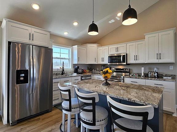 - Breakfast Bar, Kitchen Island, Custom Cabinetry, Granite Counters, Double Vanity, Tub, Open Floorplan, Dining/Living Room Combo, Kitchen/Dining Room Combo