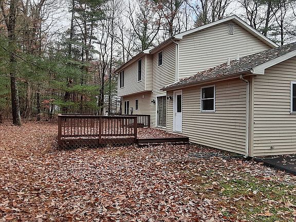 Beautiful home with new layout and all new stainless appliances including a large double oven. Brand new central air and heat. All new hardwood floors downstairs and all new carpeting upstairs. All bathrooms have completely new facilities and tile floors. Located on 1 acre, this property has a full basement, brick fireplace, large deck for entertaining. Drive up to the home on new paved driveway. Great wooded views. This road leads to a cul-de-sac so there is very little traffic.