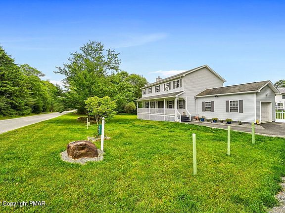 HIGHEST AND BEST BY FRIDAY, 8/12, AT 2:00PM. YOU WILL NOT REGRET SEEING THIS PERFECT HOME, Light and bright, and in a very quiet neighborhood! It has EVERYTHING, plus many special touches! 4 bedrooms, 3.5 baths, basement family room, well appointed kitchen and baths, granite, tile, hardwood, NO CARPET!, large eat in area, formal dining rm, living room fireplace, 3 season room overlooking the back yard, then multi layered decking, cascading down to the pool! Enjoy this home inside and out. Macadam drive and utility shed complete the picture! All floor plans are at the end of the photo tour. Low taxes, no dues, perfect location...what else do you need? So close to all Pocono amenities, schools, and shopping. See photo tour!