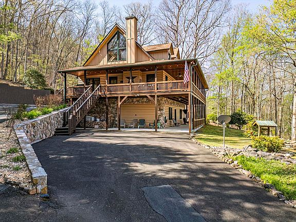 GREAT OPPORTUNITY IN BLUE RIDGE!!! LOCATION, LOCATION, LOCATION and back on the market at no fault of the Seller! Well maintained cabin with 2.75 acres, a large barn with electricity, 50 amp service for RV, water, and an oversized detached two car garage!!! Home is located at the top of the property with a seasonal mountain view, plenty of covered porch space, and a finished basement all in a quiet neighborhood with paved roads and easy access. Home is freshly painted and stained, owner recently replaced carpet in all three bedrooms and septic recently inspected and emptied. Granite counter tops, stainless steel appliances, Dining Room Bay Window, wood burning stove, and a heated tile floor in the master bathroom are some highlights of the interior. Basement is complete with a game room and bar area, family room, office/den, and a full bathroom. Pool table and bar in game room included with sale! Plenty of room for all your toys and close to everything Downtown Blue Ridge and Lake Blue Ridge has to offer. Show by appointment only. Seller is offering a one year home warranty with an acceptable offer.