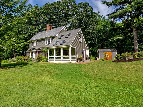 If you are looking for a home to warm your heart and feed your soul, you won't want to miss this post & beam, passive solar contemporary located at the edge of historic Pennellville! Its south-facing site overlooking a broad lawn allows parallelograms of natural light to bathe the home through many windows and skylights, adding to the drama and charm of the interior. Offering both open and more secluded spaces, this home doesn't miss a trick! Rumford-style fireplace in the wonderful open kitchen/dining room, 1st-floor laundry & full bath, ample closets, woodstove, wood & tile floors, slate counters...upstairs are 3BRs (1 is a 2-room suite) and another full bath. The walk-up attic offers plenty of high, dry storage! Outside are myriad delights to explore from sheds, firepit, and greenhouse to established gardens to the woods behind, nearby trails, and nearby public water access. Minutes to Brunswick conveniences and commuter routes, this is an absolute treat for the senses! Offers received by 5PM Sunday, 8/23, will receive a response by 6PM Monday, 8/24.
