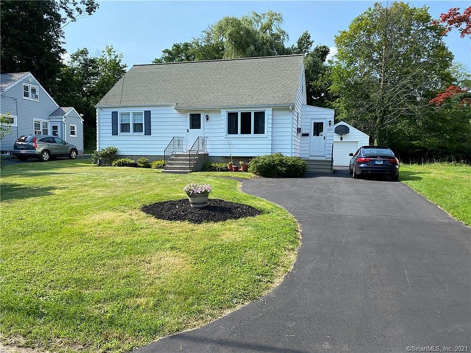 Perfect move-in condition 1,404 sf Cape Cod home with 4 bedrooms, one bath and an oversize detached garage. This beautiful home is walking distance to New Britain High School and the community pool. It's across the street from the playground, sports field and tennis court. Only a 16 minute drive to the popular Blue Back Square in West Hartford. There's a partial finished basement and the oversize garage that's insulated and has power and lighting for the hobbyist.