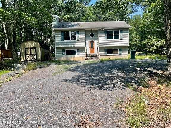 A Little Loving will Go a Long Way... Perfect fixer upper for the investor or new family to make their own. Located in a gated community in the heart of the Pocono Mountains, minutes from Bushkill Falls and Shawnee Ski Mountain. Excellent commuter locale. 3/4 BR, 2 full baths , Spacious Living room w/ stone faced wood burning Fireplace for cozy winter nights and a large entertainment deck to enjoy on beautiful summer nights! Alternate heat source includes a pellet stove in the bottom floor. Motivated Seller, bring on all offers!!