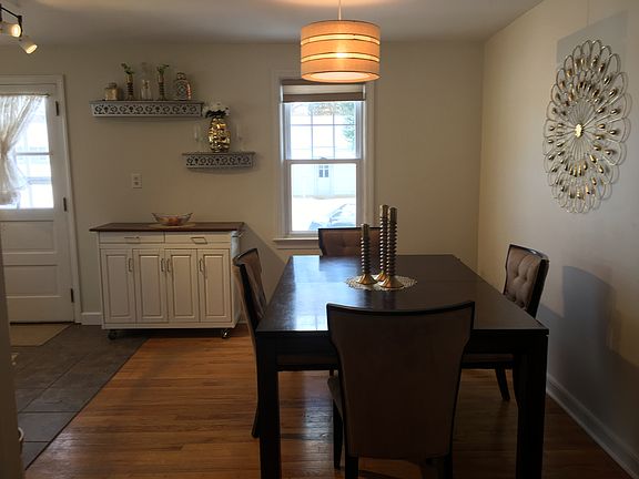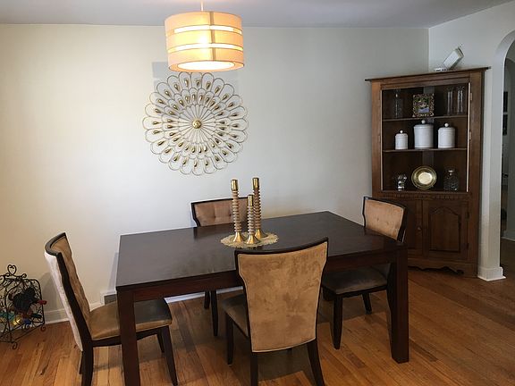Great corner property with a large fenced in yard and detached over sized one car garage and patio. Walking distance to schools, parks and shopping. Nice size Living room with hardwood floors. Dining area with hardwood floors. Newer kitchen with tile floors and door to the back yard. Full bath on the first floor and two bedrooms one is being used for home schooling at this time. Very large second floor master bedroom or separate into two. Basement with laundry.