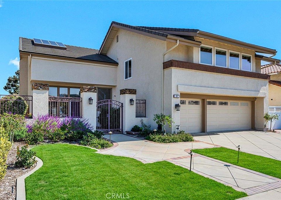 Enter the gated front courtyard to the gracious double door entry*The first impression of this home is the light bright décor & soaring ceilings w/the stunning views beyond*The formal living room is accented by elegant fireplace & is adjacent to the formal dining room*Remodeled kitchen is gorgeous w/custom wood cabinetry, large center island, granite counters, stainless appliances, recessed lighting, separate breakfast nook & views of the countryside*spacious family room has beautiful wood floors, wet bar, cozy fireplace & French doors to the yard*Downstairs bedroom has 3/4 bath, perfect for guests, family, office, or downstairs living* Master suite is showcased by soaring ceilings, fireplace, private balcony, wood floors & fabulous views! the remodeled bath has elegant tile in tub & shower & clear glass shower doors*Remodeled baths have granite countertops*Bonus room offers vaulted ceiling, wood floors and can easily become two more bedrooms*Covered patio is perfect for enjoying the expansive views Amenities include 3 car garage, clerestory windows, mirrored wardrobe doors, concrete tile roof, newer dual ac units & newer dual heating units, extra wide staircase. This home is meticulous maintained and features one bedroom down with private 3/4 bathroom and 3 bedrooms up and a large game room which can be converted to a 5th bedroom or 5th & 6th bedroom. Features include a full security system with cameras inside and out. Easy access to freeways, shopping, Peters Canyon, and horse trails. If you are looking for a view home you must put this one on your list. Horse stable is available to residents of High Horse Trails on an availability basis & there are stalls available now..