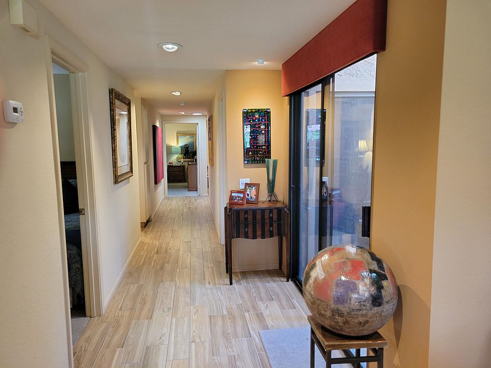 An entertainer's dream located in the beautiful & desirable Chaparral Country Club. This newly remodeled bright & tastefully decorated 3-bedroom 3 bath home offered Turnkey furnished with everything you could possibly need to start enjoying a true desert experience from the moment you walk through the door. The living room & dining room are open to the kitchen with a large eating area that will comfortably accommodate a nice formal gathering of family & friends. The floor plan includes 2 large master bedrooms for the comfort of you & your guests. Steam shower in one & a gorgeous free standing spa tub in the other. All new lighting with energy efficient features, new wood like porcelain title throughout, shutters, outdoor retractable shades, all new stainless-steel appliances & skylights for the perfect addition ensuring a bright cheerful feeling throughout the entire home. The back patio boasts views of not only 2fairways of the course but the stunning surrounding mountain range in the distance. There is a misting system to keep you cool on the warmer days and a fire pit for the cooler evenings. Chaparral is a full-service country club with 24 hour guarded gate, 18-hole golf course, 21 pools, lit tennis courts, pickle ball courts, clubhouse, restaurant wi