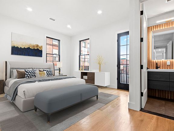 Welcome home to this beautiful and bright 3BR/2 BA newly renovated condo in one of the most rapidly growing areas of Jersey City. Modern, elegant features mix with warm, rich finishes to create a space that is brimming with high-contrast urban chic. The spectacular layout, with both a corner living room and primary bedroom, allows for a flood of natural light from Eastern, Western, and Southern exposures. Wide-plank white oak floors and oversized windows add to the open and airy feel of this loft-style unit. Custom designed kitchen by Kuche-Cucina boasts sleek Samsung black stainless steel appliances and waterfall quartz countertops. Unwind for the night in your spacious primary bedroom with private balcony and walk-in closet. Luxuriate in your en-suite spa-like bath enveloped in woodsy warm tones with double vanities and a porcelain tiled rainfall shower. 1 assigned parking spot and 221sf private storage room included. Just a short walk to spectacular Riverview-Fisk Park and some of the Heights' hottest spots like Corto, The Franklin, Bread and Salt, Fox and Crow, Choc au Pain and more. Be a part of the most exciting growth in Jersey City!