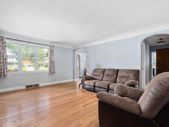 Multiple offers- Highest and best by Tuesday 6/27/23 by noon.This home is so much bigger than it looks! It has six bedrooms! Two on 1st floor and 4 on the 2nd floor! One bedroom is used as a big walk-in closet. Big living room! Then go in through pocket doors into family room with pellet stove LEADING to three season room. Private 6 ft fence-in backyard with deck, perennial flowers and fire pit. New roof, hardwood floors, new kitchen backsplash, solar panels included, and they are 100% paid for. Close by shopping centers and bus lines, three miles from thruway.