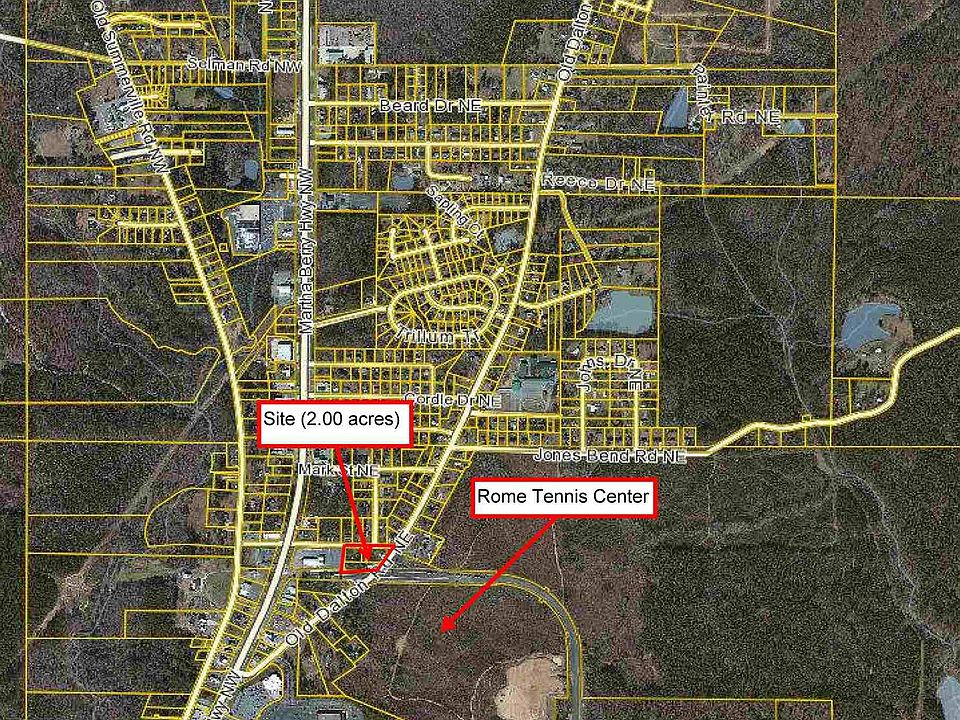Corner lot located at the intersection of Old Dalton Road and the Armuchee Connector. Frontage on the Armuchee Connector, Old Dalton Road and Old School Rd. Approx. 2.00 acres zoned CC Community Commercial. This tract consists of four separate tax parcels. Located diagonally from the new Berry Tennis Center with visibility from Martha Berry Highway. Potential convenience store, retail, hotel, or restaurant.