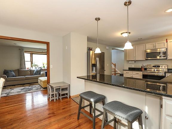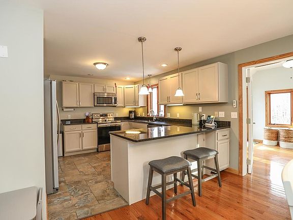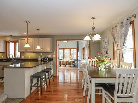 Beautiful cape home for rent in one of the most desirable locations in Peterborough. Close to Route 101, yet nestled on Old Street Rd, lends itself to a great commuter location, while still having a country feel. The home is updated and has many new renovation - there are no carpets, boasting elegant hardwood floors and ceramic tile. The main floor has a living room, dining room, kitchen, 2 bedrooms, and gorgeous sun room that leads to a deck. The top floor is an open concept primary bedroom or additional living space, along with a spa style bathroom, a pellet stove, and a balcony for your morning coffee with a gorgeous view of the sunrise. Finally, there is a large finished basement with its own bedroom and full sized windows. The home has central air conditioning and heating, as well as a W/D hookup in the basement. Each floor has its own bathroom, with 3 in total. And a flat back yard with a fire pit and play ground add to the charm of this unique home. Unfurnished. Renter is responsible for all utilities and yard maintenance. Pets are an additional $100/month based on approval. Rental income requirement is 3x monthly income.