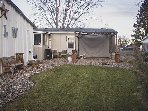 Clean, excellent floor plan 3 bedroom, 2 bathroom 1008sqft manufactured home. The home has updated flooring throughout. Dishwasher, range, and refrigerator included; a beautiful enclosed sun porch; newer roof; RV parking; asphalt driveway and a fenced landscaped yard with underground sprinklers. This home also features a 24X41 shop with 3/4 bathroom, utility room with washer/dryer hookup.