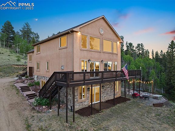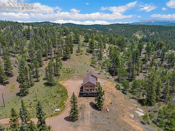 Welcome to your dream home in the heart of nature's paradise. This fully renovated property showcases many exceptional features, making it a haven of comfort, luxury, and natural beauty. Step inside and be captivated by the elegantly designed kitchen with walnut counters on the island, new Schroll soft-close cabinetry, stainless steel appliances, and two sinks. The hickory wood floors throughout the main level and master bath exude warmth, while the custom wood handrails add a touch of artistry. Enjoy breathtaking views of Crystal Peak, Florissant Canyon, and majestic mountains from every corner of the home. With 35 acres of land featuring an Aspen Grove, hiking trails, large rock formations and wildlife, you’ll be able to immerse yourself in the serenity of nature. Indulge in the luxurious master suite with a 5-piece bath, stand-alone shower, vessel tub, and a separate water closet. While a spacious mudroom with a dog shower caters to your practical needs. Versatility abounds with a second laundry facility in the walkout basement and the separate living quarters above the garage, complete with vaulted tongue and groove ceilings and a private bathroom perfect for a man cave or hobby room. Enjoy the breathtaking views from the large deck off the main living room. While inside, the warmth of wood doors and trim creates a cozy and inviting atmosphere. Outdoor enthusiasts will revel in the proximity to gold medal trout fishing in 11 Mile Canyon, Dream Streams, Terryall and 11 Mile Reservoirs. Nearby ice fishing, snowshoeing, cross-country skiing and ATV adventures, offer endless excitement. World-famous ski resorts such as Breckenridge and Keystone are just an hour and fifteen minutes away, offering a multitude of winter adventures. Additionally, the convenient access to Highway 24 provides easy routes to Woodland Park and Colorado Springs. Come embrace this exceptional opportunity to own a slice of paradise, where your dream home meets an exhilarating lifestyle.