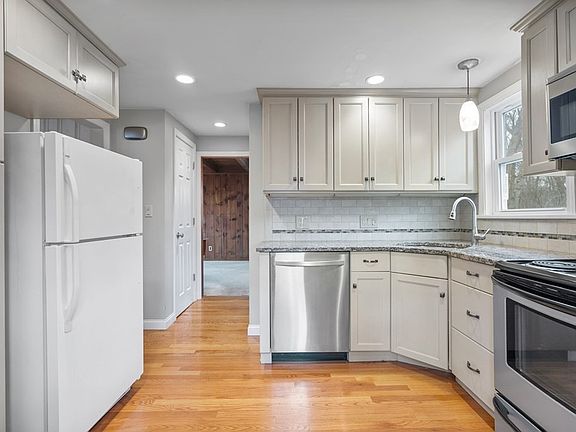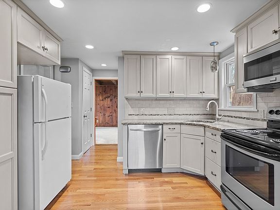 Storybook Craftsman's Style Cape located on a desired Street has great potential! Front to back beamed living room with fireplace and built in book shelves. Updated kitchen with granite counters, hardwood floors and large pantry closet. Formal dining room with built in hutch. Updated half bath with penny tile flooring completes the first floor. A back stairway off the kitchen brings you to a partial finished basement family room and deck over looking a private backyard and town land. Second floor with 3 potential bedrooms and a full bath ready for your renovation ideas! Showings begin immediately. Be in your new home before the new year!