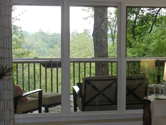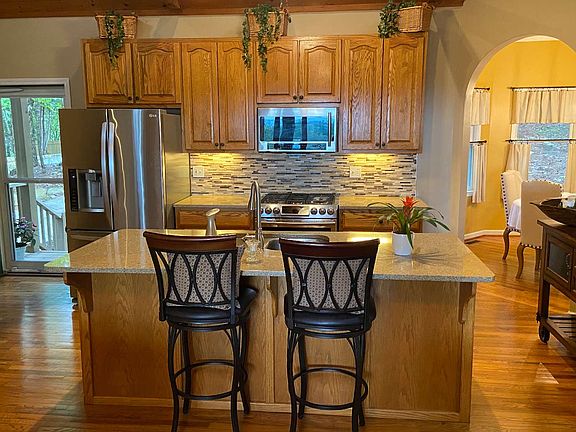 Like to sit on a covered porch enjoying a year round, long range mountain view with beautiful evening sunsets? This well cared for home in ever popular Walnut Mtn is move-in ready. The current owners have been relentless in updating and caring for the home for comfortable full time living. Open concept, granite counter tops, stainless appliances, large island, vaulted ceiling with tongue and grove, refinished hardwood floors, stacked stone wood burning fire place, unique round dining room, 3 BR, 3.5 bath, w/master on main, murphy bed upstairs. Whole house generator. Basement has gas log fireplace. Wrap around deck joins wide covered porch. Circular concrete driveway and garage. Enjoy hiking, pool, tennis, and fishing lakes. 15 min to the center of downtown.