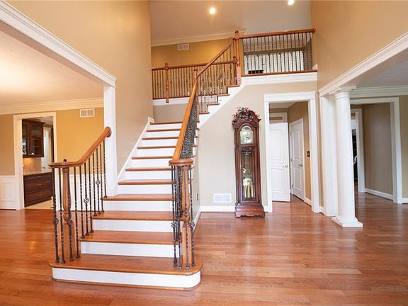 Fabulous 6-bedroom 5.5-bath home on 3.3 private acres in Wexford! Incredible finished lower level includes gameroom, gas fireplace, granite wet bar, bedroom suite with full bath and walk-in closet, rear stairs to garage, huge storage room, walk-out to covered patio w/ hot tub. First-floor master has reading area, private deck, exquisite master bath with heated floor, dual granite sinks, steam shower, soaking tub, and walk-in closet. Four large bedrooms on second floor, two with private baths, and one with rear stairs to kitchen. Huge entry with split stairs to front/kitchen. Gorgeous granite kitchen with island, gas cooktop, pantry, desk, eat-in area, and access to large rear trex deck. Vaulted family room with floor-to-ceiling windows and stone gas fireplace. First-floor executive den with built-ins. Huge 3-car garage, first-floor laundry w/ chute, hardwood floors, additional attic storage. So close to Cranberry, Wexford shopping, dining, Rt 19, Tpke, I-79. Pine-Richland schools.