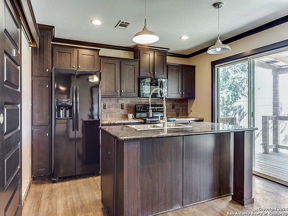 ***PRICE IMPROVEMENT*** Wow...every home has a WOW factor but this home has many! As you approach the property the large deck quickly catches your eye & welcoming thoughts of relaxation aren't far behind. Start or end your day on your porch, entertain friends & family with good times & laughter. Or like most folks simply enjoying playing children/pets or watching birds & wildlife. This exceptional 3 bed, 2 bath is like none I've seen. The open floor plan invites you right in & quality is evident as you enter. New carpet in living area that boast ceiling fan, recessed lights, entertainment center & easy access to kitchen & laundry. The kitchen has rich chocolate cabinets that says class all on its on, has a island breakfast bar, large pantry & refrigerator conveys. The primary bedroom features new carpet, ceiling fan, large walk-in closet, luxurious suite bathroom with a soaking tub, dual vanities, and a separate shower. Laundry room is very unique & offers a folding shelf with removable folding table if you want to roll it to the living room while you fold clothes, Washer & dryer conveys! WOW! Park-like neighborhood with amenities as community pool, basketball, tennis, access to Medina Lake & club house, underground utilities & security guard entry! Whether as a residential, investment or recreational property this is a real jewel!!! Come stay or play in the beautiful Texas Hill Country!. SKI-DO CONVEYS WITH PROPERTY