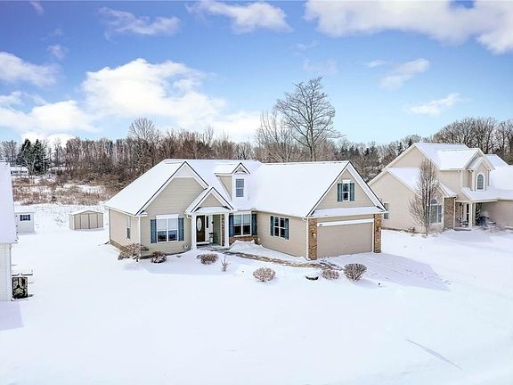 DROP DEAD GORGEOUS! This 3 bdr/3 bath contemporary ranch is move-in ready. Don't let the sq. footage fool you. Spacious & Open w/ soaring architectural ceilings & details to delight. Greece location, Hilton schools. This home is pristine & offers: sprinkler system; surround sound built in speakers, intercom system to front door, 3- car wide driveway. You will love the finished basement that adds an additional 1000+ sq ft of living and entertaining space. Must be seen! Delayed Neg. on file. Offers will be reviewed Mon 3.11 @ 6pm.