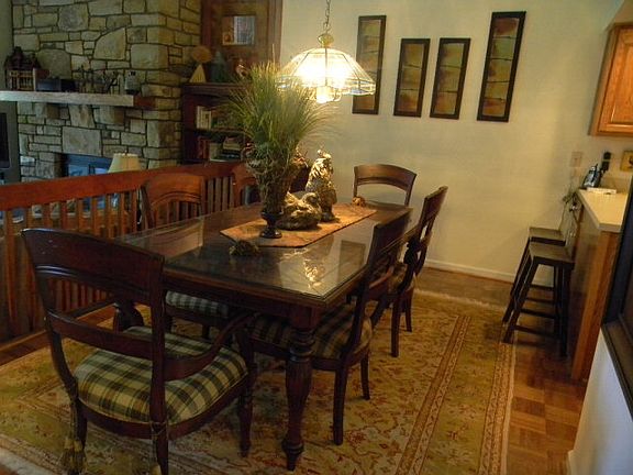 Lovely mountain furnishings, fully furnished, immediate occupancy. Sit on the covered porch and enjoy the sounds of the nearby stream or watch the swans on the pond.Beautiful location.