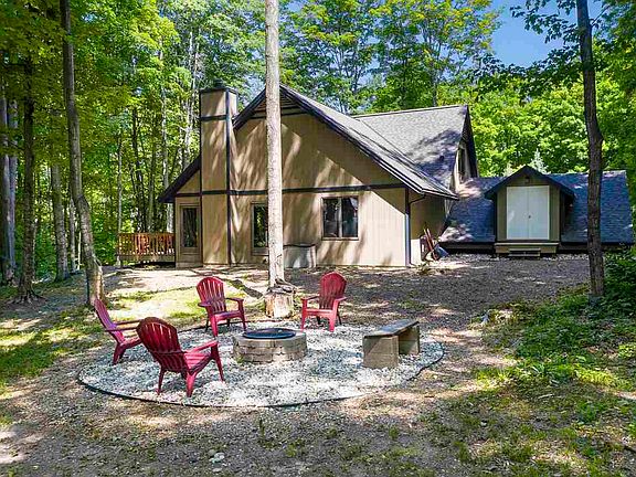 Spacious year round or seasonal home located at the base of both Boyne Highlands and Nubs Nob. Views of the Highlands from the back porch! This home offers 4 bedrooms and three bathrooms with an additional sleeping loft and an office! All three bathrooms have been updated and a new roof was installed. Just off the attached two car garage is a spacious mudroom for all your gear. The garage also has a walk in storage area above it for future completion or additional storage. In the back yard the fire pit is ready for you to relax and entertain your friends and family all year long!
