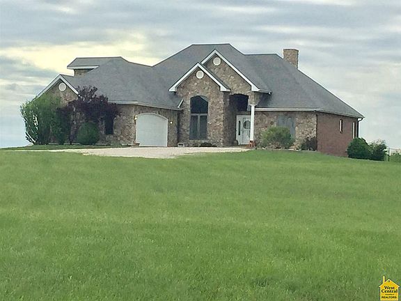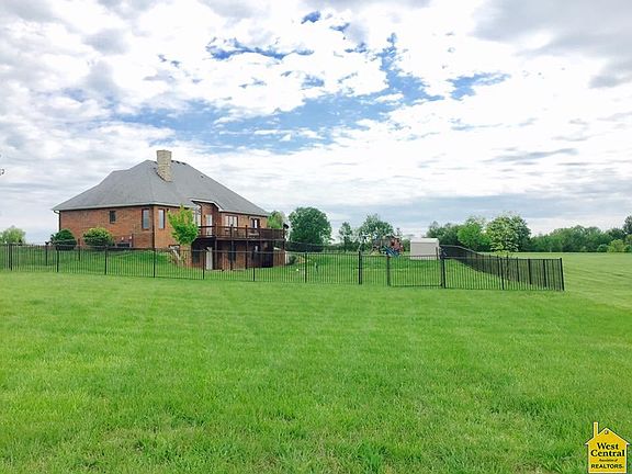 STATELY 6bedroom (8 with non-conforming) home on 3ACRES with stunning sunset views from All areas of home!!!LARGE deck off the back of the house from the MASTER BEDROOM, LIVING ROOM and Dining room provides a place to enjoy those breath-taking views.Kitchen features SS appliances, Soaring Vaulted Ceilings, Detailed trim work & molding throughout home, 3 electric fireplaces,BEAUTIFUL AUTHENTIC hardwood,Tall windows, central Vac, fully finished basement, storm shelter, oversized garage all in a quiet country setting