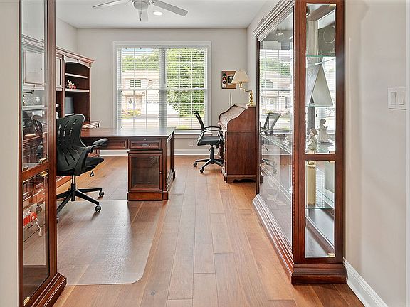 Immaculate two-story home in the private gated Rosemont Estates active adult community. This is a sought after “Kensington” model, featuring many upgrades. This 2885 Sq Ft home boasts a versatile floor plan with 2 bedrooms & 2.5 baths on the first floor, soaring ceilings, new wood flooring throughout, an open floor plan, and 2-car garage. The kitchen and baths have been beautifully updated including granite and marble countertops. Perfect for an extended family, including a formal dining room, 2-story great room w/fireplace, wet bar and Large Trex deck. Main level laundry room has 3yr new Samsung front loading W/D. The entire home has been freshly painted. All upgrades within the last year. Tons of storage and much more. All located on a serene cul-de-sac.