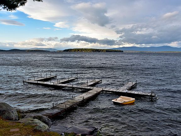 This immaculate home offers the most exceptional lake and mountain views on Lake Winnipesaukee! Rare opportunity to own in this 8 unit townhome community with expansive waterfront, huge gazebo/deck over the water, large grassy sitting area, fire pit, multiple day docks and your own mooring. The home boasts a beautifully updated interior with new custom kitchen and baths, quartz countertops and stainless appliances. Open living space with balcony overlooking the Broads. Heated, finished oversized garage with ample storage space, laundry sink and washer/dryer. Large back patio framed by multi-colored hydrangeas. Scenic Drive is a wonderful road with a 25mph speed limit, and is a favorite of runners, walkers, and people taking pictures of the incredible views. Make this your dream home or four season getaway!