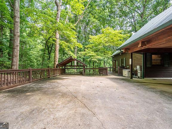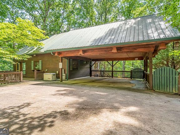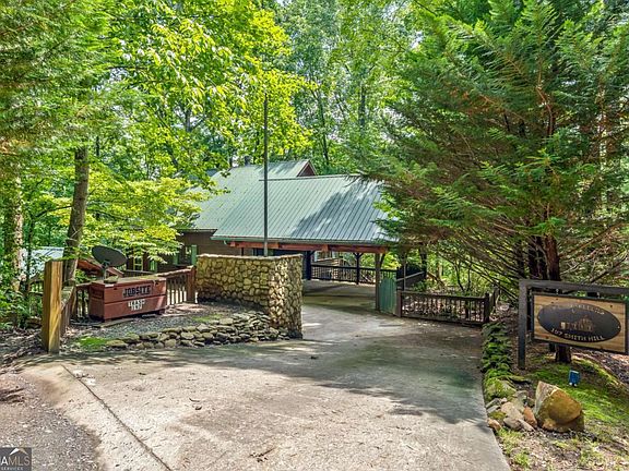Turnkey STR Investment or Private Mountain Retreat - Cherry Lake Community. Discover this story telling enchanting 2-bedroom, 2-bathroom fully furnished cabin in the desirable Cherry Lake community, where rustic charm meets modern comfort on just under 2 private wooded acres. Perfect as a personal getaway or a proven short-term rental income property, this home offers both lifestyle and investment appeal. The exterior boasts a durable metal roof, wood siding with stone accents, and a spacious concrete driveway with parking for up to five vehicles plus a two-car carport-ideal for hosting family and guests. Step inside to soaring windows that fill the home with natural light, a well-equipped kitchen, cozy dining area, and inviting living space. The main level features a guest bedroom, full bath, and convenient laundry. Upstairs, the private primary suite offers a jetted garden tub with a rain shower above and additional washer/dryer hookups. Outside, enjoy three expansive decks, a relaxing hot tub, two fire pit areas, and a fun game room-all designed for entertaining and guest enjoyment. Additional features include a Generac generator, low HOA fees ($300/year for road maintenance), and access to Cherry Lake. Just 17 minutes to Blue Ridge and 20 minutes to Ellijay, this cabin is ideally situated for year-round rental demand. Whether you're seeking a tranquil mountain retreat or a high-performing STR, this Cherry Log gem delivers both lasting memories and strong rental returns.