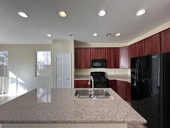 Attractive home on a large lot in Rhodes Ranch! You don't want to miss the opportunity to live in this beautiful community with this house at the end of a cul-de-sac. 3 bedrooms, 2.5 bathrooms, and a loft! Ceiling fans in every room including the loft. Large primary bedroom with additional sitting room, in-suite bathroom with large tub and separate shower, and a walk in closet. 24 hour guard gated community.